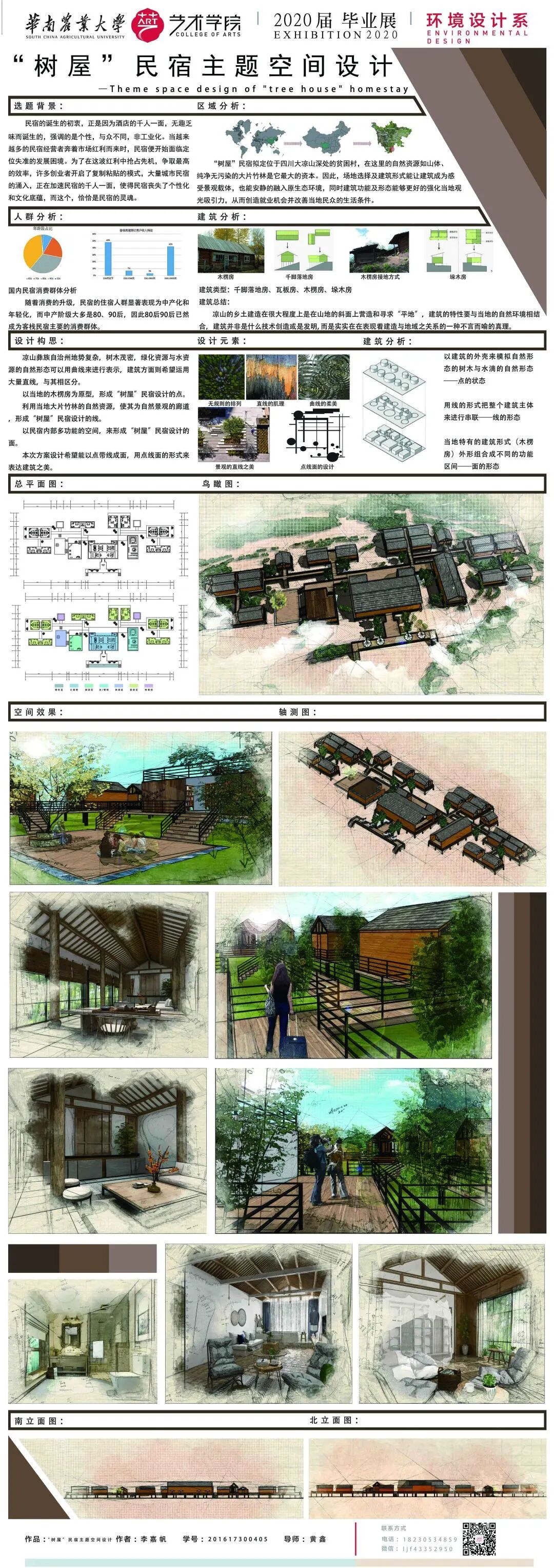 作品简介:“树屋”民宿拟定位于四川大凉山深处的贫困村,在这里的自然资源如山体、纯净无污染的大片竹林是它最大的资本。场地选址在一定意义上赋予了当地自然资源很大的意义,建筑作为载体融入当地,消费者可以通过民宿更好的体验当地的民俗文化,同时改善当地的经济情况,给当地的经济发展带来新的活力。