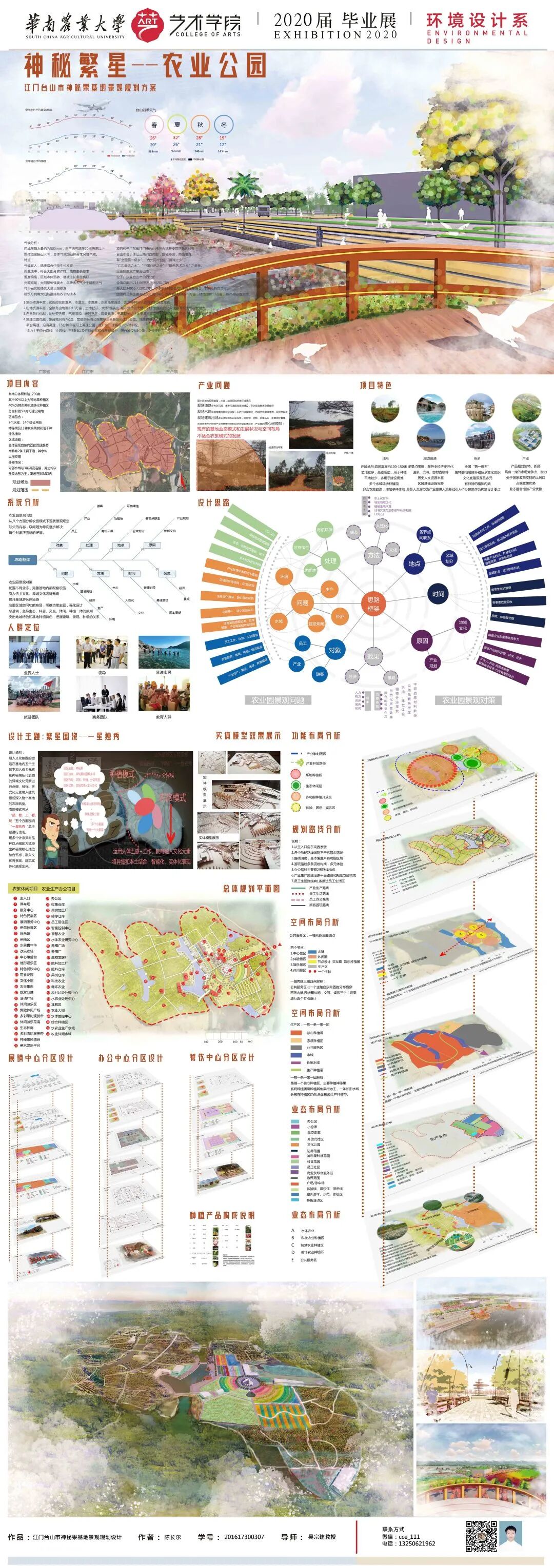 作品简介:在侨乡元素包裹下地域农业园的景观设计如何与神秘果——原产于南非,所代表的异域文化进行结合?本作品对碉楼元素和南非的装饰元素进行了一定的结合,从五个主题:看、玩、品、工、教围绕文化进行景观规划。并对园区内的三大建筑体块——餐饮、办公、展销做出概念设计。结合五感,将文化融入景观、融入室内设计,智能化、实体化表现出来。