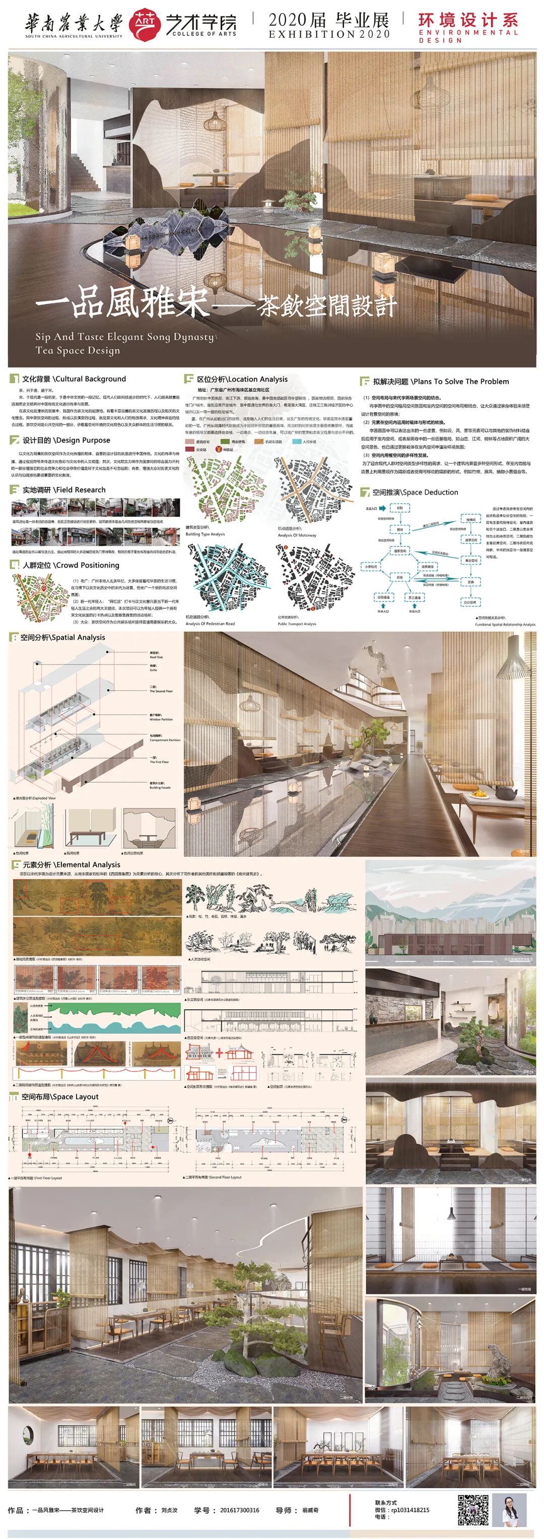 作品简介:一个以宋代文化为背景,从宋画空间作为设计切入点的文化茶饮空间设计。