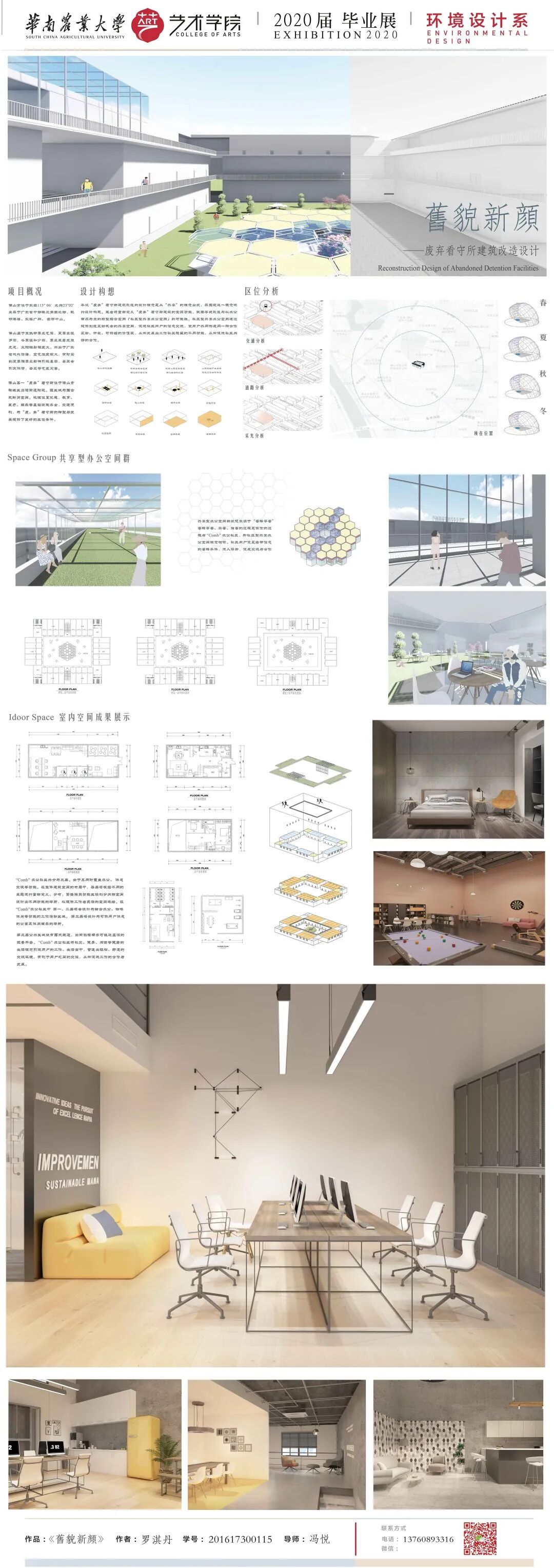 作品简介:“Comb”办公社区的设计概念取自“Honeycomb”, 其旨在从“共享”的理念出发,重新定义“废弃”看守所建筑的空间功能,试图寻找改造为社区型共享办公空间的可能性。在保留原始建筑肌理基础上,融入新的现代设计元素,唤醒“废弃”建筑的活力,使新、旧空间可以得到最大限度的匹配和共生。