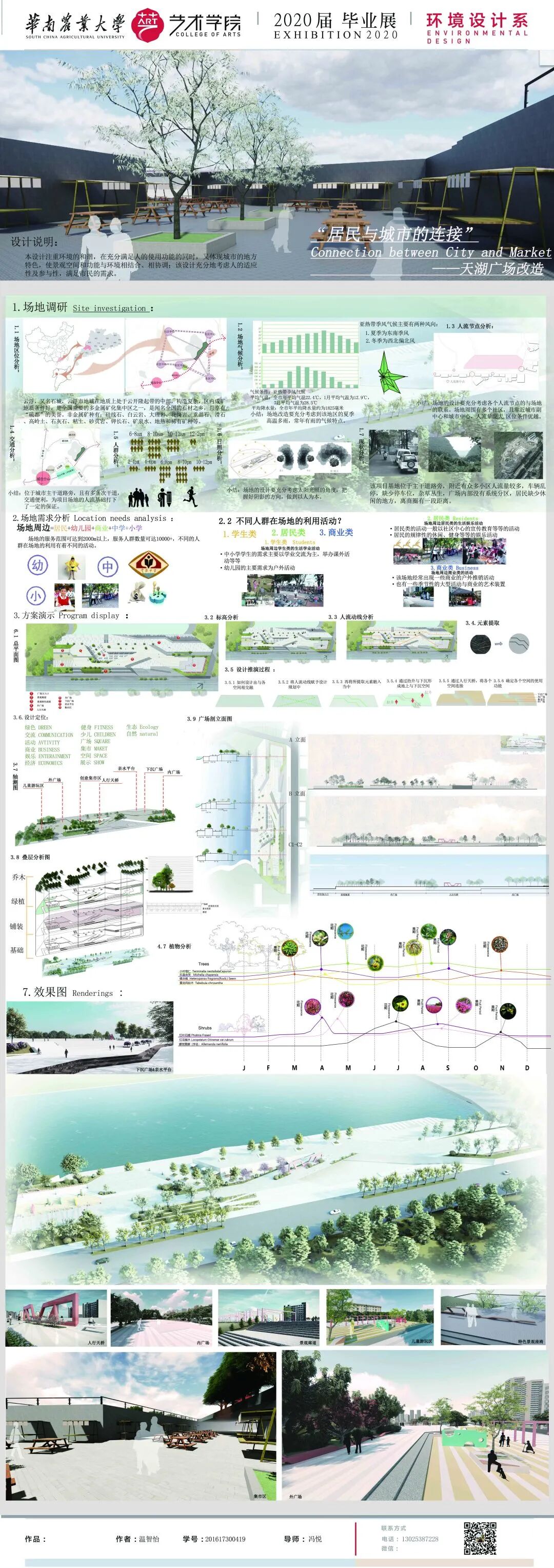 作品简介:城市集市空间作为重要的介质,可以满足各类人群的需求,促进城市中不同人群的交流和交往,人们可以通过既定的和约定俗成的空间中寻找归属感和认同感,从而成为居民与城市交流沟通的载体,构成连接。通过对“城市广场”与“创意集市”的概念进行解剖与分析,在两者之中寻找一个平衡点,结合本土文化即城市石文化的大理石元素的提取,运用元、素的隐喻、留白等的手法诠释在该场地设计研究中该场地景观设计;采用构成中的点、线、面的要素,结合生态要素用于场地分析与指导;有效针对根据自然、商业、空间的要求提供指导,有机整合各个空间与“创意集市”的关系,让“创意集市”成为城市魅力的一部分。乐享其中。