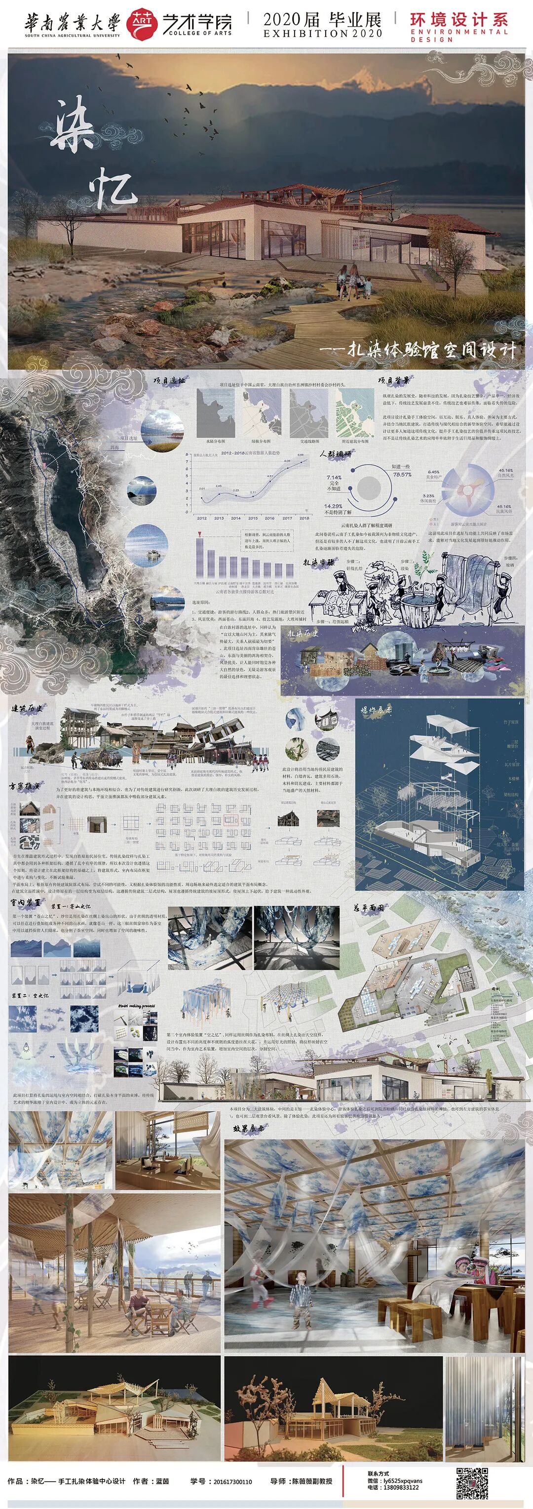 作品简介:此空间设计以互动、娱乐、真人体验、休闲为主要方式,建立一条扎染文化与人之间的传承纽带。旨在通过对扎染的再设计,融入创新,运用到现代室内与建筑设计当中,打造现代新型体验空间,将被忽视的非遗传统文化重新拉入大众视线。这能为非遗文化的推动与继承起到重要作用。