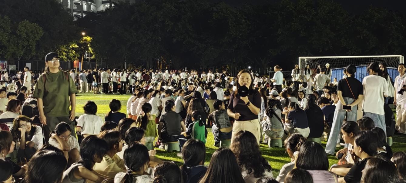 当晚,学院在启林南操场举办破冰晚会。党委书记施娜柯、院长张艳河学院领导班子成员及新生班主任走到各专业新生中,与同学们亲切交流并致辞,勉励大家尽快融入大学生活。助班、疏导们还组织了互动游戏,现场气氛热烈,新生们在欢声笑语中逐渐熟悉彼此。