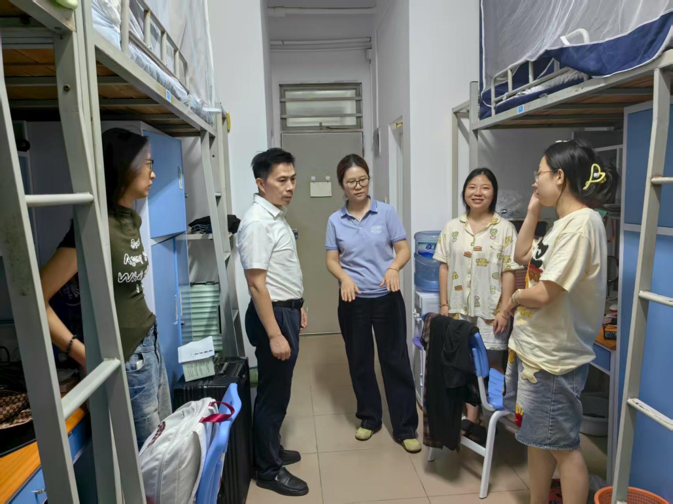 晚会结束后,学院领导走访宿舍,了解新生住宿情况,耐心解答疑问,并叮嘱同学们尽快适应环境、制定学习规划、与室友和睦相处。