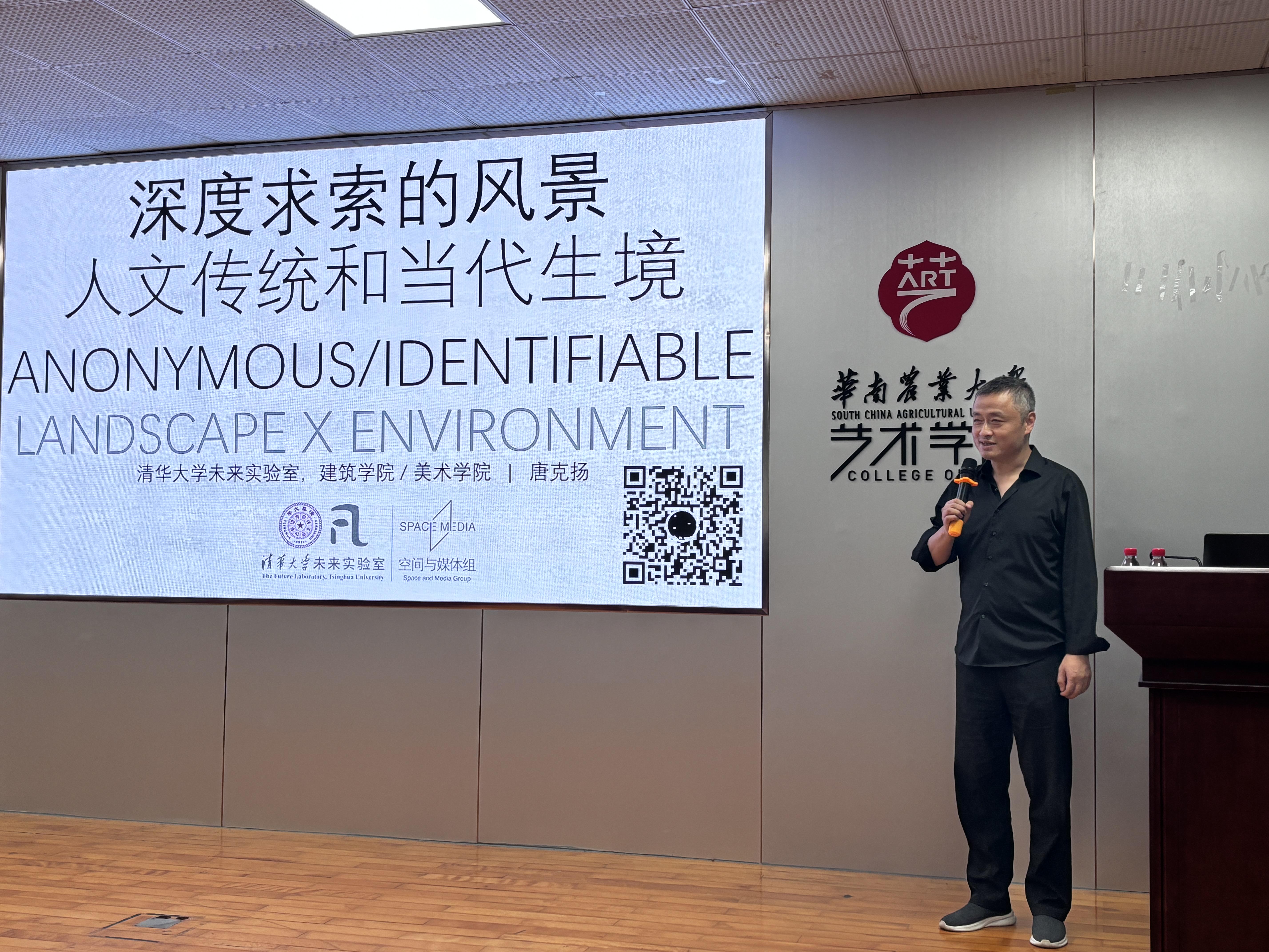 9月26日下午,“艺术大讲坛:丝语·学生成长论坛”第14期在艺术学院501会议室举行。本期论坛以“深度求索的风景:人文传统和当代生境”为主题,特邀哈佛大学设计学博士、清华大学未来实验室首席研究员、感知与意识研究中心主任、清华大学美术学院与建筑学院博士生导师唐克扬教授担任主讲,艺术学院院长张艳河主持。活动吸引了200余名艺术学院师生参加。