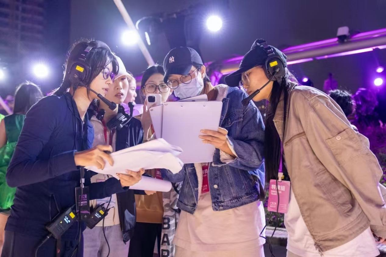 排练与演出过程中,模特、编导、模管三大团队高效协作,近两百名表演系学生参与演出,编导团队统筹节奏与场面调度,模管团队保障执行衔接,形成高质量的教学实践闭环。学生在真实项目中锻炼策划统筹、舞台表现、视觉造型、音乐设计等综合能力,实现课堂学习与行业实践的无缝衔接,体现了“以项目促教学、以实践育人才”的教育理念。