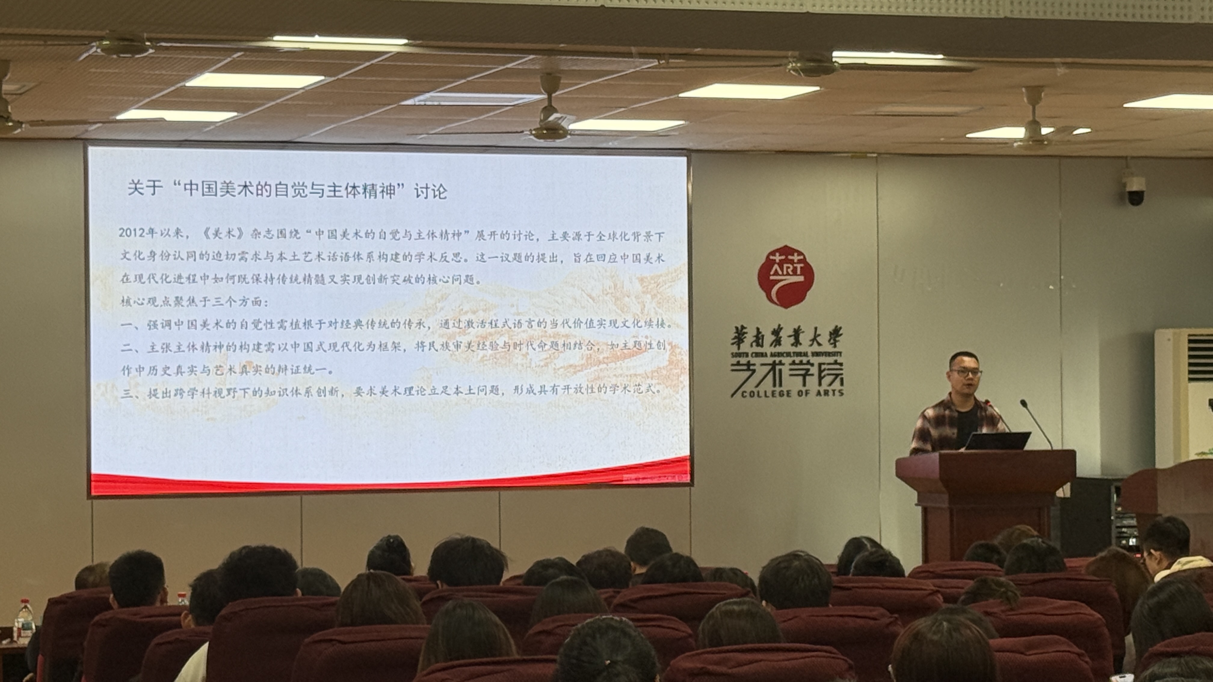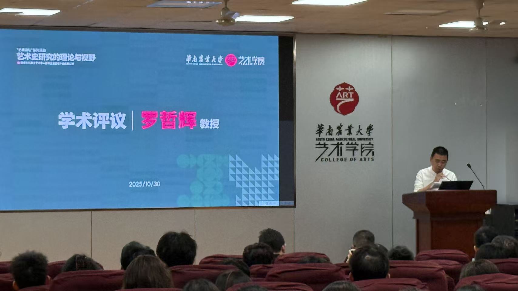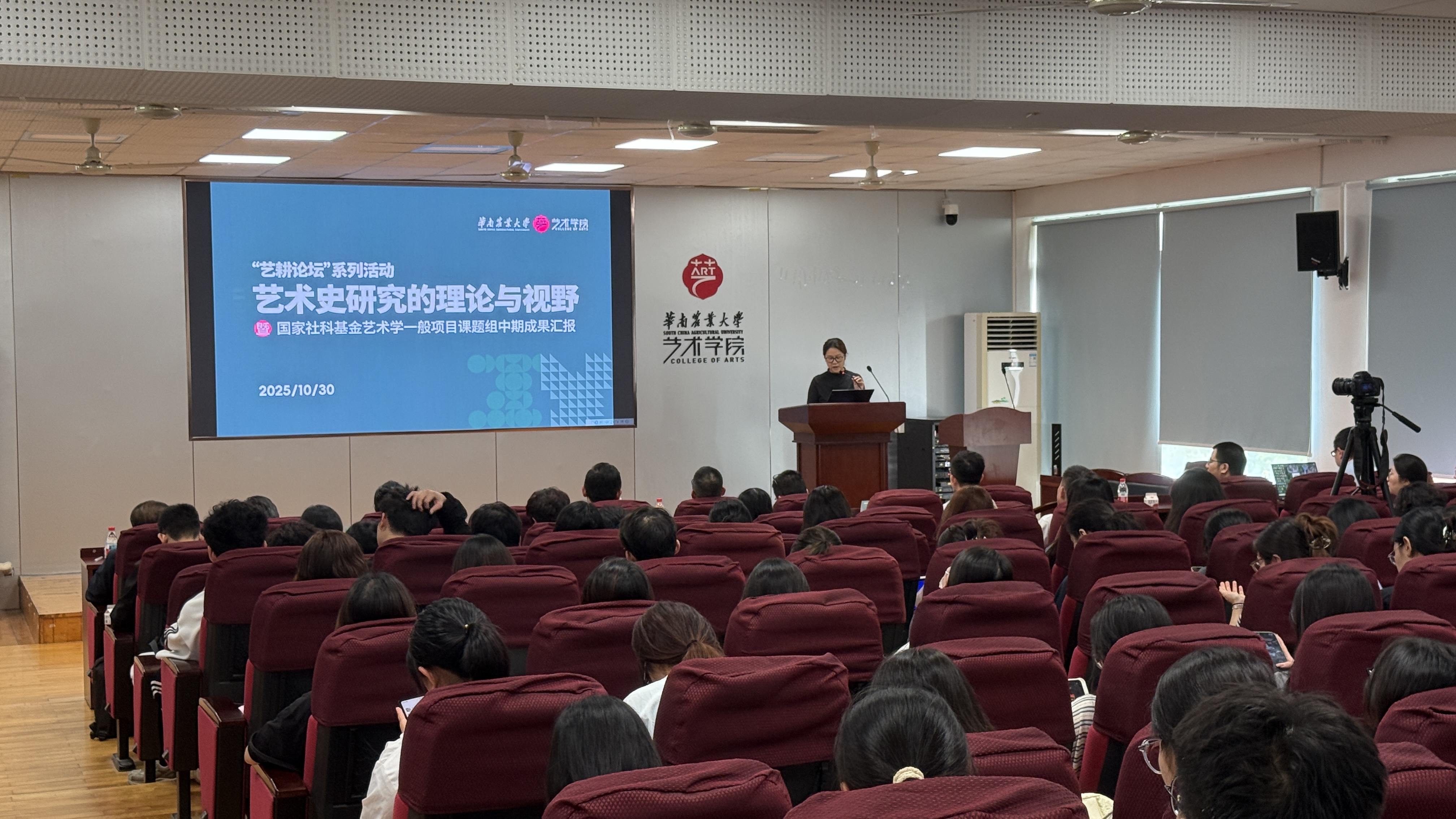 2025年10月30日下午,华南农业大学艺术学院举办艺术史研究的理论与视野”专题讲座暨国家社科基金艺术学一般项目课题组中期成果汇报会。艺术学院副院长陈薇薇致辞,欢迎到场的艺术学院师生及社会各界嘉宾。