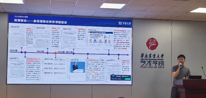 为了进一步赋能智慧课程建设,提升教师的人工智能素养,10月31日上午,艺术学院邀请雨课堂方柱清老师为我院全体教职工开展“AI赋能课前—课中—课后新功能”专题培训。