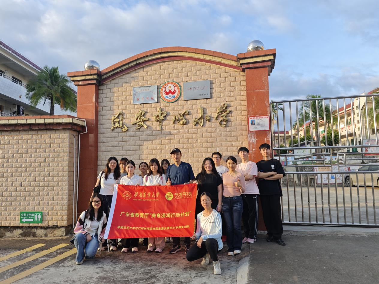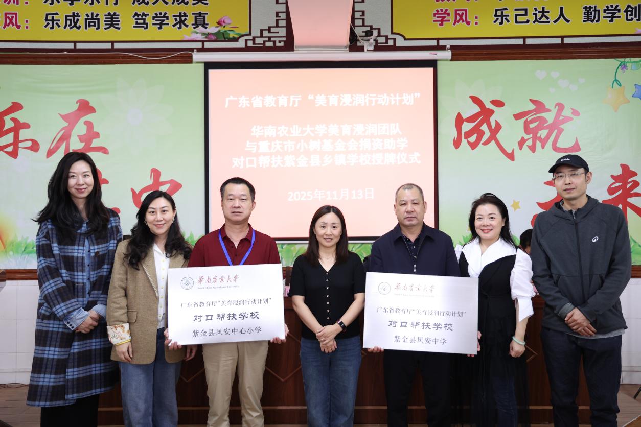 为深入贯彻落实广东省教育厅“美育浸润行动计划”和“双百行动”部署,推动城乡美育均衡发展,助力乡村教育振兴,11月13日,华南农业大学艺术学院党委书记施娜柯率美育浸润团队师生近20人,赴河源市紫金县凤安中心小学开展美育帮扶活动。团队通过授牌仪式、座谈交流、课程实践等多种形式,与当地学校共商美育发展路径,标志着华南农业大学美育浸润行动在覆盖范围上进一步拓展,在辐射效应上持续提升。
