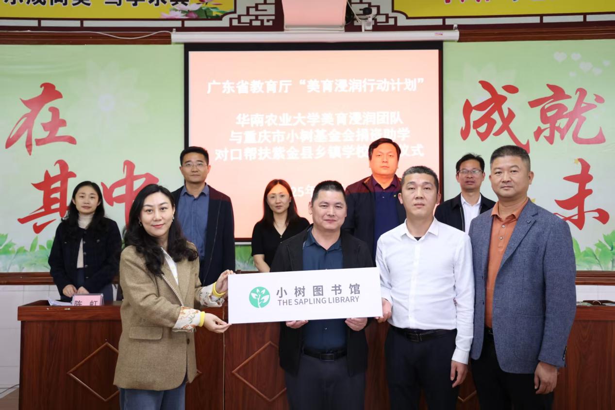授牌仪式上,紫金县教育局及河源市教育局相关负责人先后发言,强调美育工作“贵在浸润、重在实效”。施娜柯介绍了学校六年来的美育浸润实践与帮扶模式。活动中,华南农业大学携手重庆市小树公益基金会向紫金县多所乡村小学捐赠价值逾13万元的助学物资,并授予“小树图书馆”牌匾。
