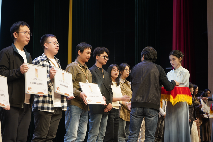 本次颁奖典礼集中展示了广东省高校在广告艺术创作与实践育人方面的阶段性成果。我院师生代表多次登上荣誉舞台,在平面、视频、策划等类别获得的省级奖项得到现场表彰。我院获奖师生代表依次上台领奖,从颁奖嘉宾手中接过荣誉证书,展现了我院在广告艺术教育与创意实践中的扎实基础与育人成效。