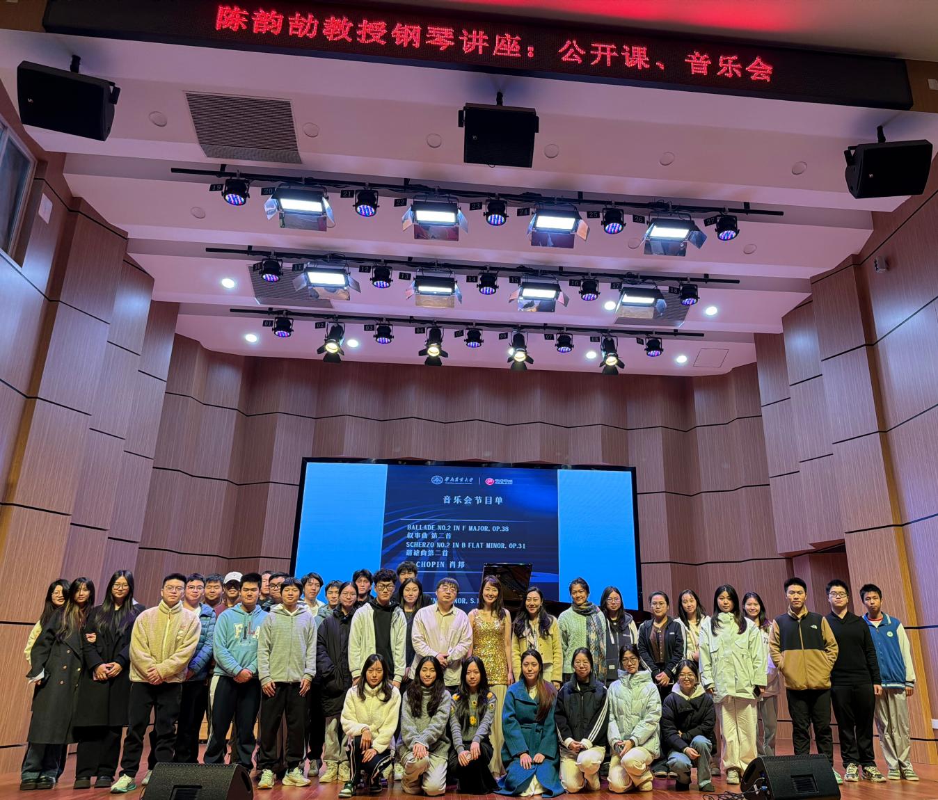 活动伊始,著名钢琴家、中央音乐学院钢琴系博士生导师陈韵劼教授为音乐系学生带来一场内容丰富、见解深刻的公开课。陈教授结合自身深厚的艺术积淀与国际获奖经验,对四位学生的演奏进行了细致指导。