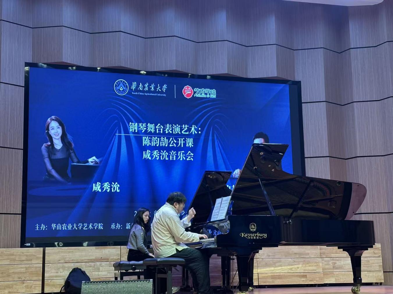 2025年11月21日上午,由华南农业大学艺术学院主办、音乐系承办的“2025秋·音乐系系列学术讲座”之“钢琴舞台表演艺术”在新音乐厅顺利举行。活动分为上下两场,包括陈韵劼教授的钢琴公开课与青年钢琴家咸秀沇(Soo-Yeon Ham)的钢琴音乐会,为师生呈现了一场从教学指导到艺术演绎的完整音乐盛宴。