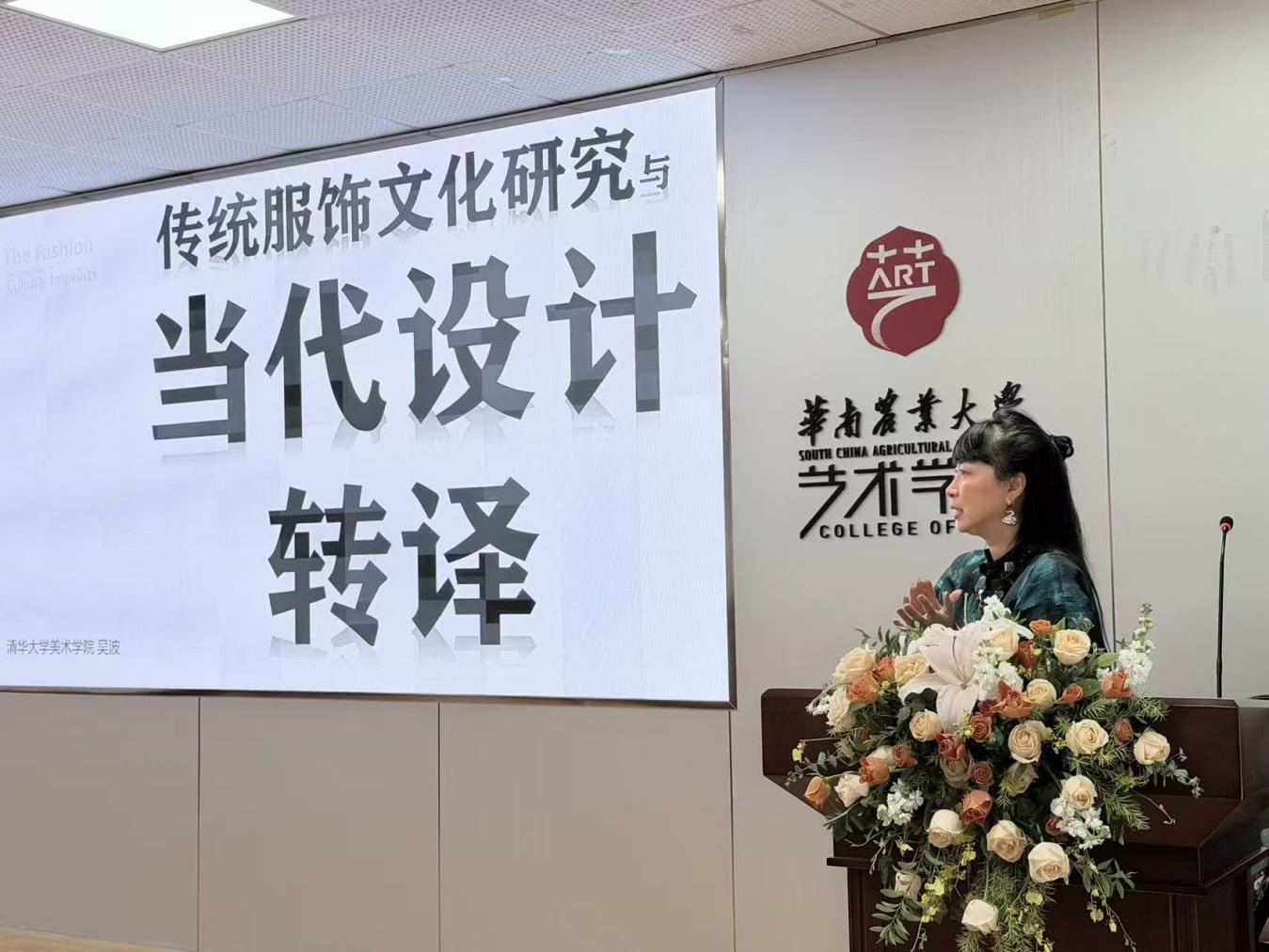 2025年11月29日上午,由华南农业大学艺术学院主办的“传统服饰文化研究与当代设计转译”讲座在学院501报告厅顺利举行。本次讲座特邀清华大学美术学院长聘教授、染织服装艺术设计系副主任吴波担任主讲嘉宾,其深厚的学术积淀与丰富的实践经验,为在场师生带来了一场聚焦传统服饰文化传承与创新的高水平学术盛宴。艺术学院相关专业师生参与了此次活动。