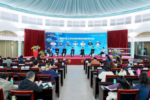 “AI赋能设计学科高质量发展”圆桌会议则聚焦AI与设计融合、教育教学转型、非遗文创创新、设计伦理与产业闭环等话题展开探讨。与会嘉宾围绕课程体系改革、产学研协同育人、区域协同创新等展开讨论,形成共识:在AI时代,设计学科必须进一步强化跨学科培养和场景实践,把非遗与生态设计转化为课堂教学案例和学生创新项目,不断提升本科教育质量和服务社会能力。