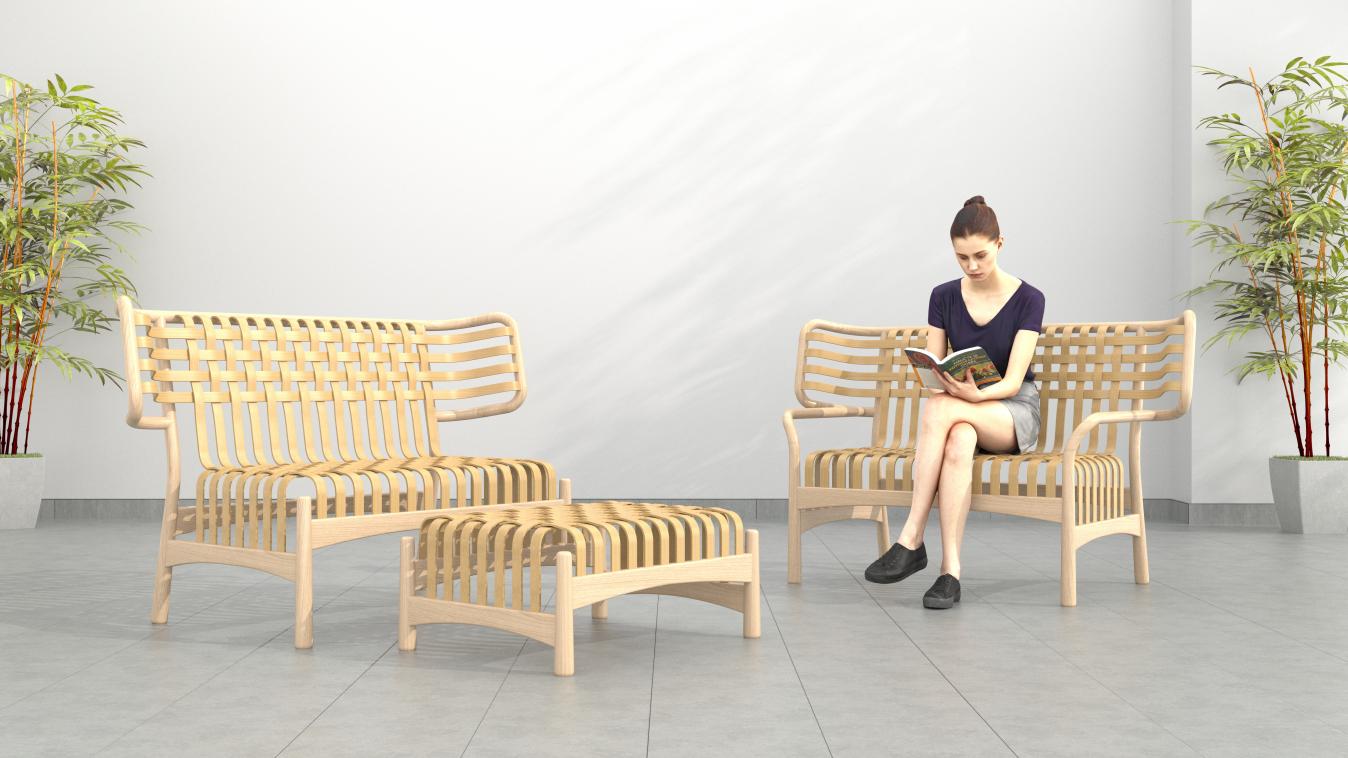 设计说明:竹艺的设计灵感来源于竹编工艺,通过将竹编的编织感放大构成座面与靠背来创造出行云流水般的艺术美感。用于编织的竹片宽30mm,厚6mm,保证了较强的支撑性与耐用性。框架由实木材质打造而成,简洁流畅的线条是本设计的亮点,既有着强烈的视觉艺术美感,又不失实用功能。