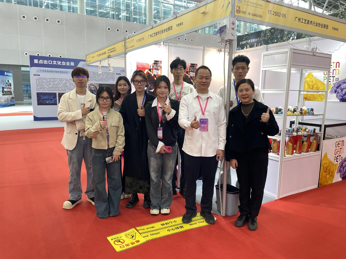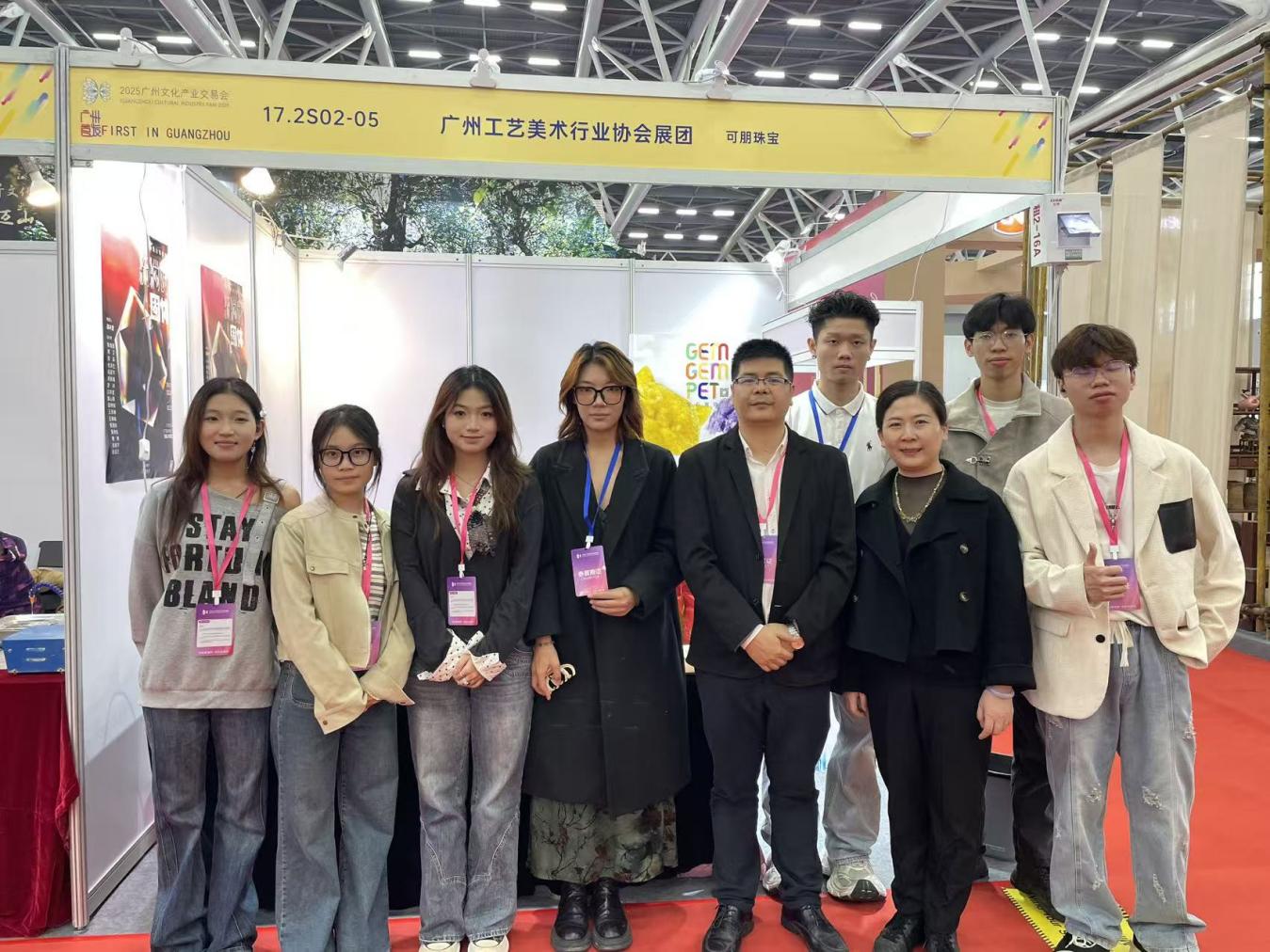 2025年12月19日至21日,由广州市人民政府主办的广州文化产业交易会(文交会)在广交会展馆D区举行。艺术学院服装系首饰方向师生作品在学院校外实践基地可朋珠宝的组织支持下参展展示。展会期间,师生作品获得腾讯视频、爱奇艺、广州地铁博物馆、广州酒家集团、岭南集团等参展机构及非遗传承人展商的关注与好评,并得到广州市工艺美术协会相关负责人肯定。