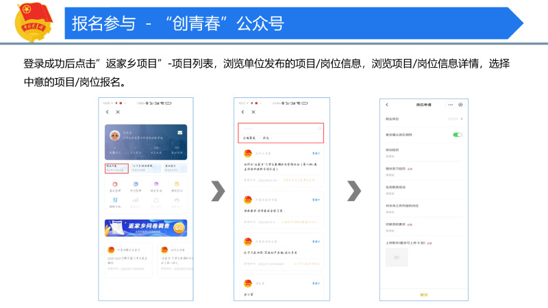 (1)有意向参与类别“政务实践和兼职锻炼”的同学请通过“创青春”微信公众号的“社会实践”栏目入口报名参加(附件1)。通过双向选择方式录取。具体操作如下: