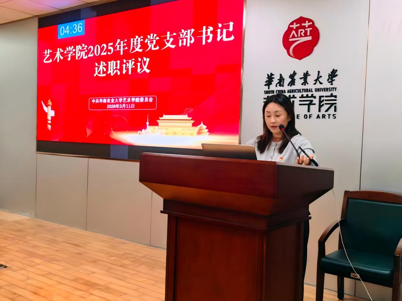2026年3月11日上午,华南农业大学艺术学院在院楼501会议室召开2025年度党支部书记述职评议会。学院党委委员、师生党支部委员参会。会议由学院党委副书记房三虎主持。