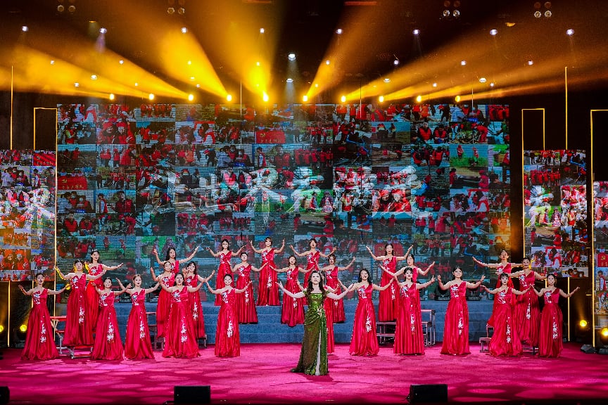 在“奉献”篇章中,音乐系新声合唱团演唱经典合唱《让世界充满爱》,以真挚歌声传递互助、关怀与团结的志愿理念。在“进步”篇章中,新声合唱团演绎《奋进新时代》,用昂扬有力的旋律展现新时代青年团结奋斗、勇担使命的精神面貌。晚会中,表演系6名学生参与十五运志愿者主题曲《我们都在这里》手语表演节目,以艺术形式传递志愿服务精神。
